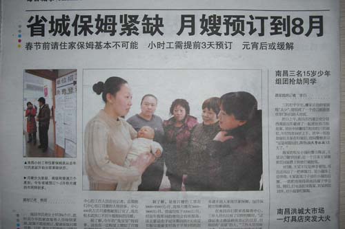 記者在采訪中了解到,近期不少準(zhǔn)媽媽都開(kāi)始為即將出世的“兔寶寶”預(yù)訂月嫂,許多家政公司年假期間的月嫂都已被“搶訂”完,而且年前的家政服務(wù)人員也處于“用工荒”的狀態(tài)。